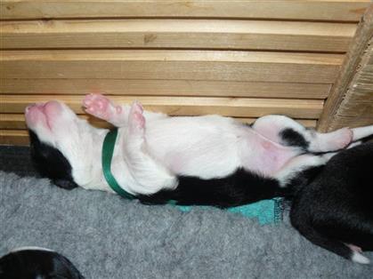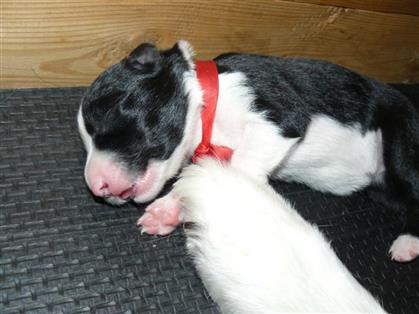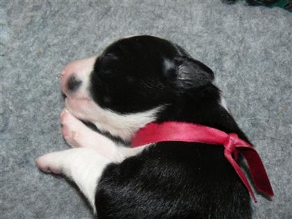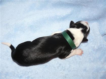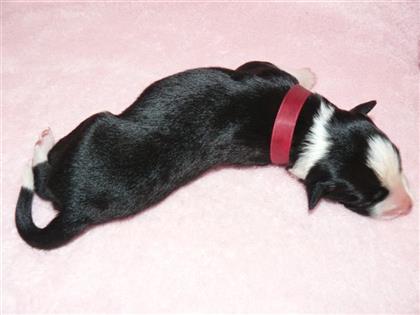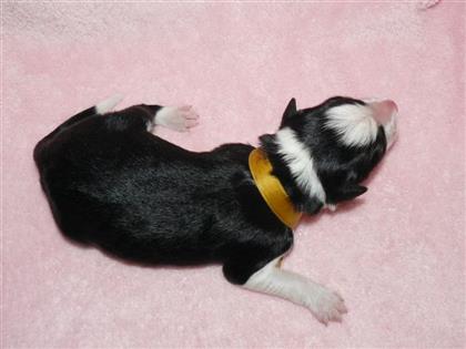 . Hündin, schwarz-weiß, 360 Gramm,